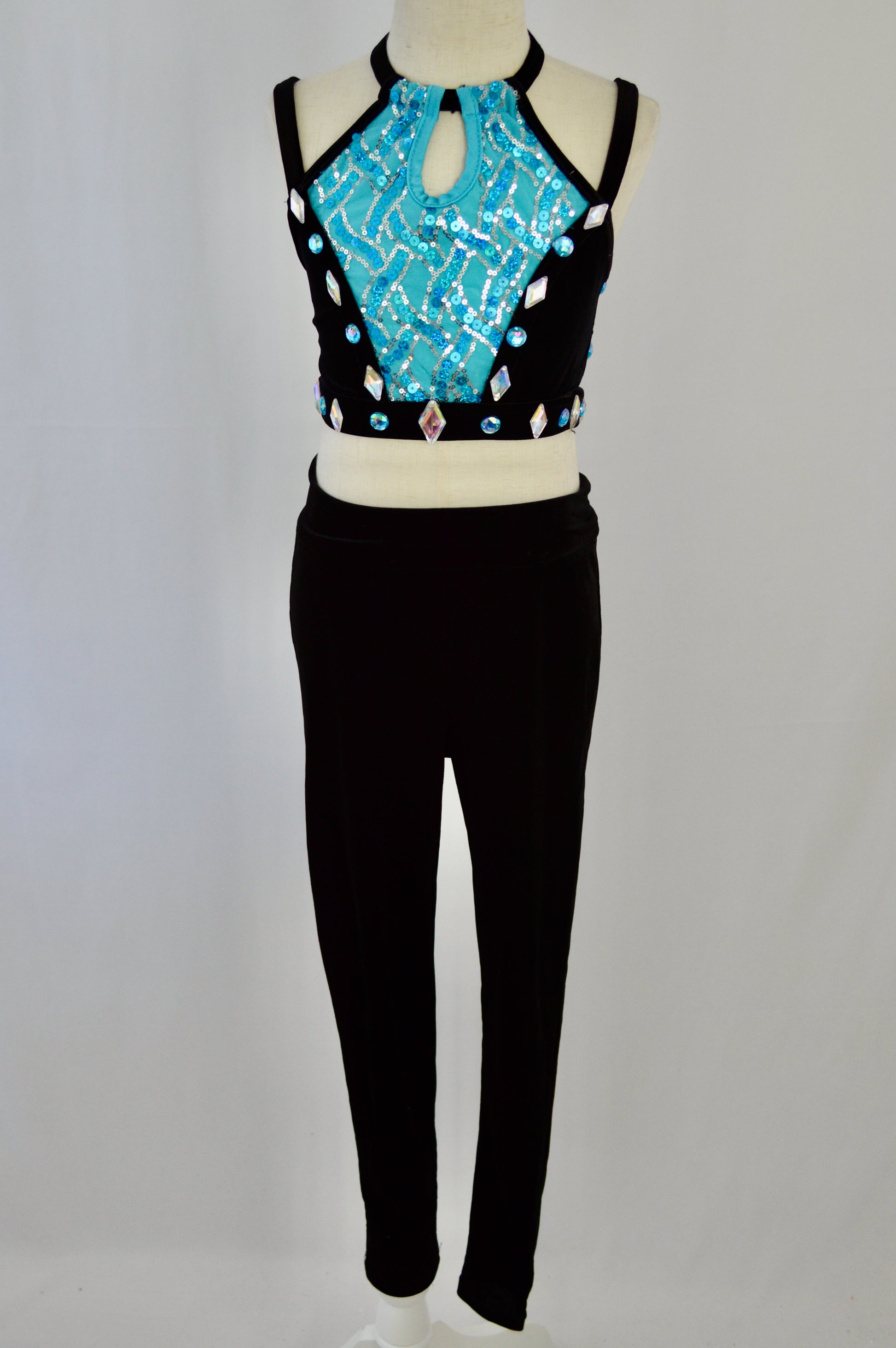 - aqua bodice with aqua and silver sequins