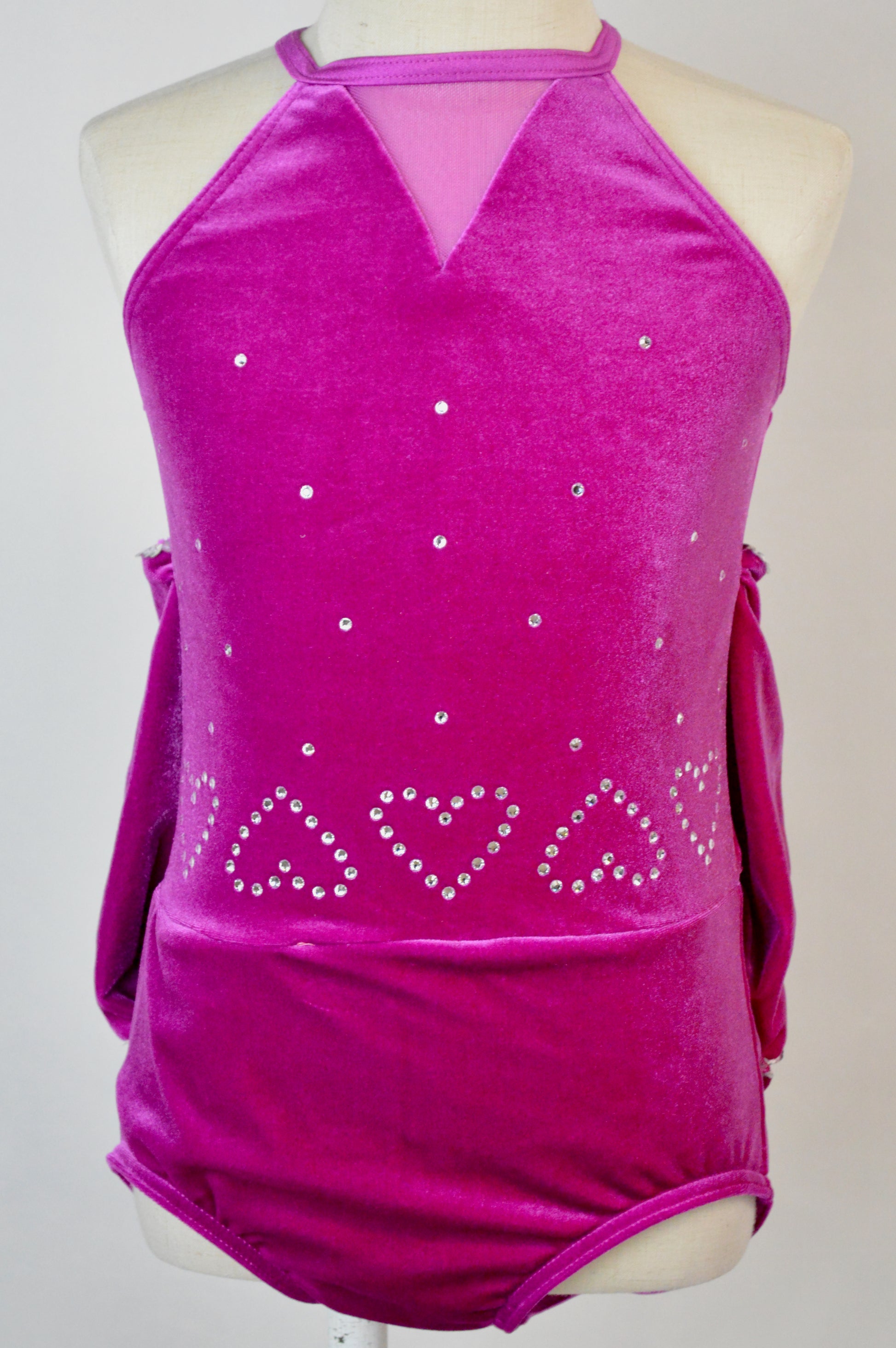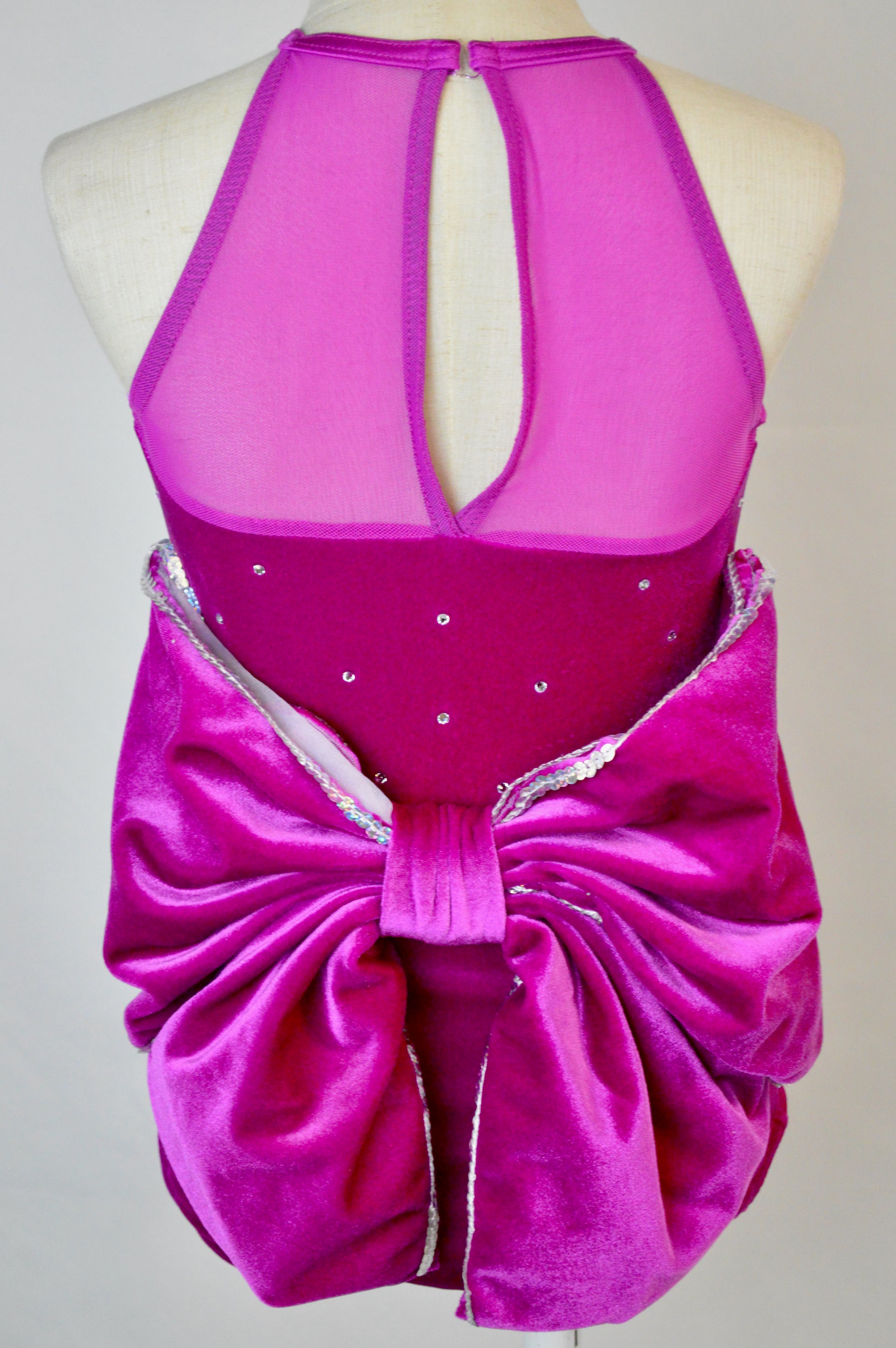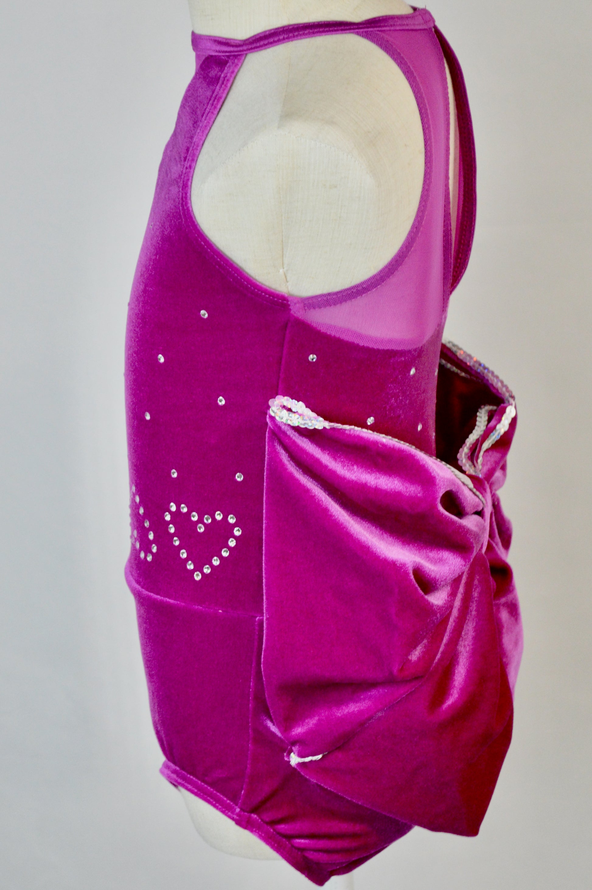 - velvet leotard with sequin trim bow-shaped bustle