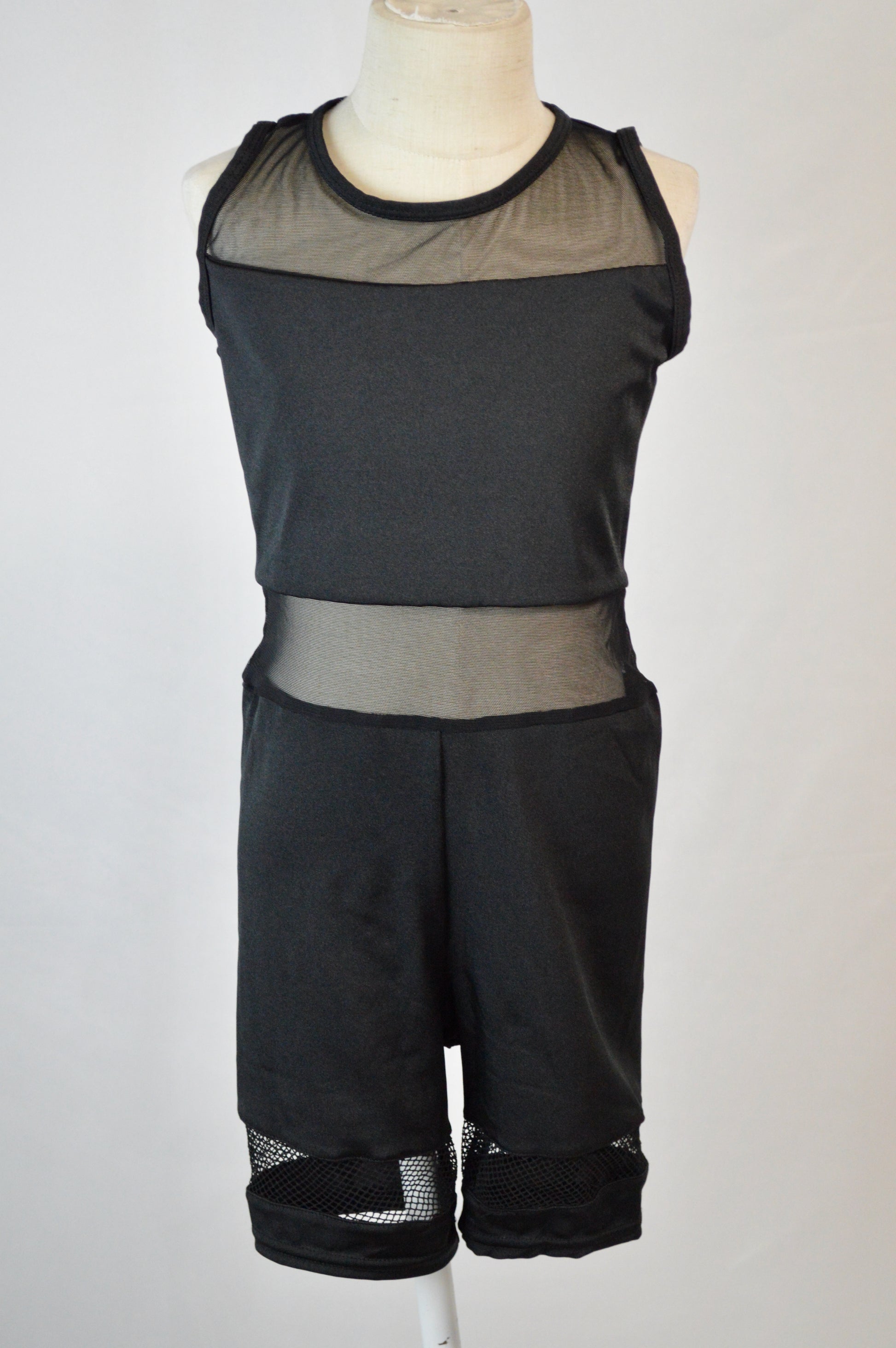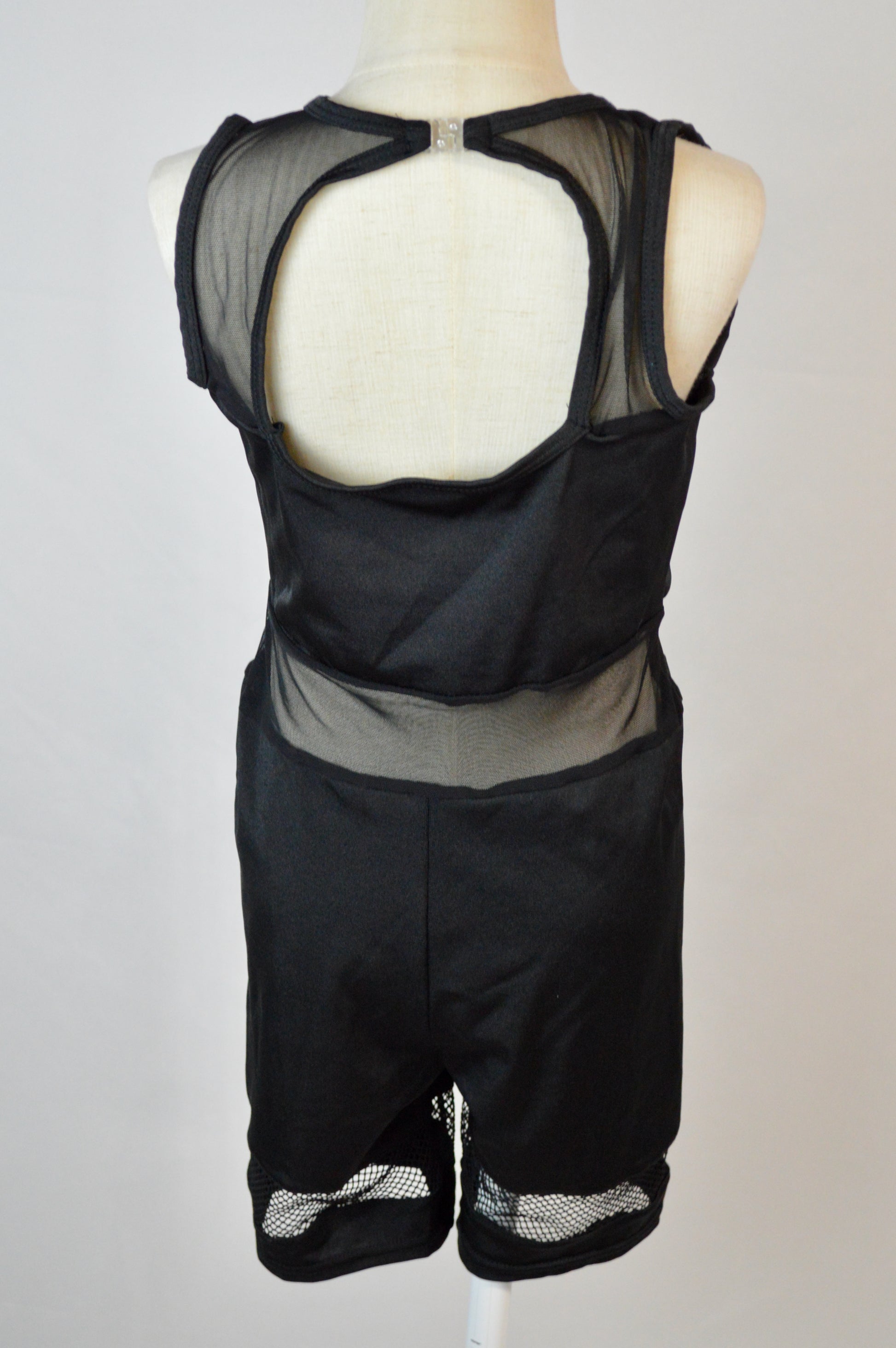 - biketard has sheer mesh yoke