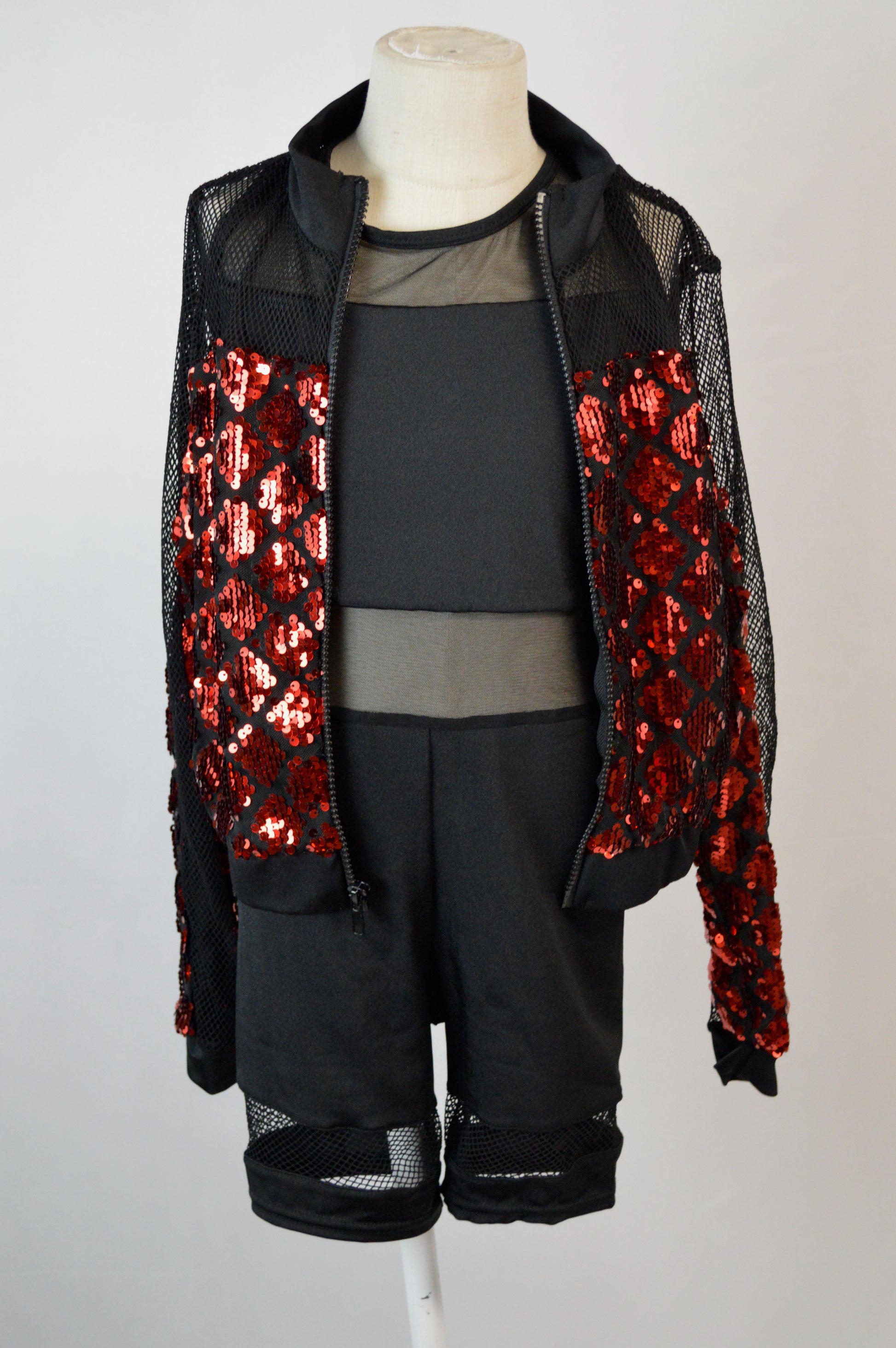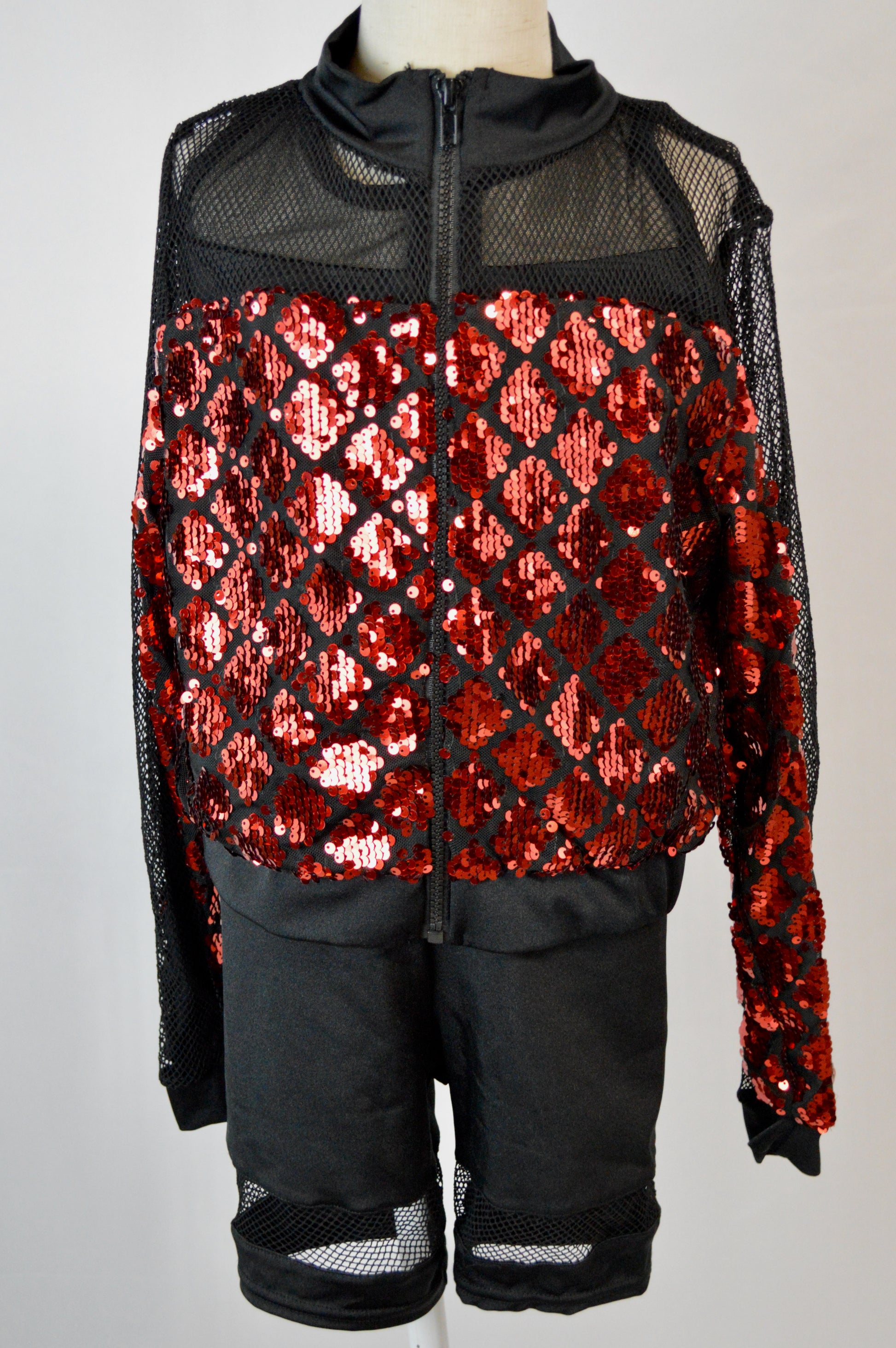 - sequin diamond pattern mesh on front and back of jacket
