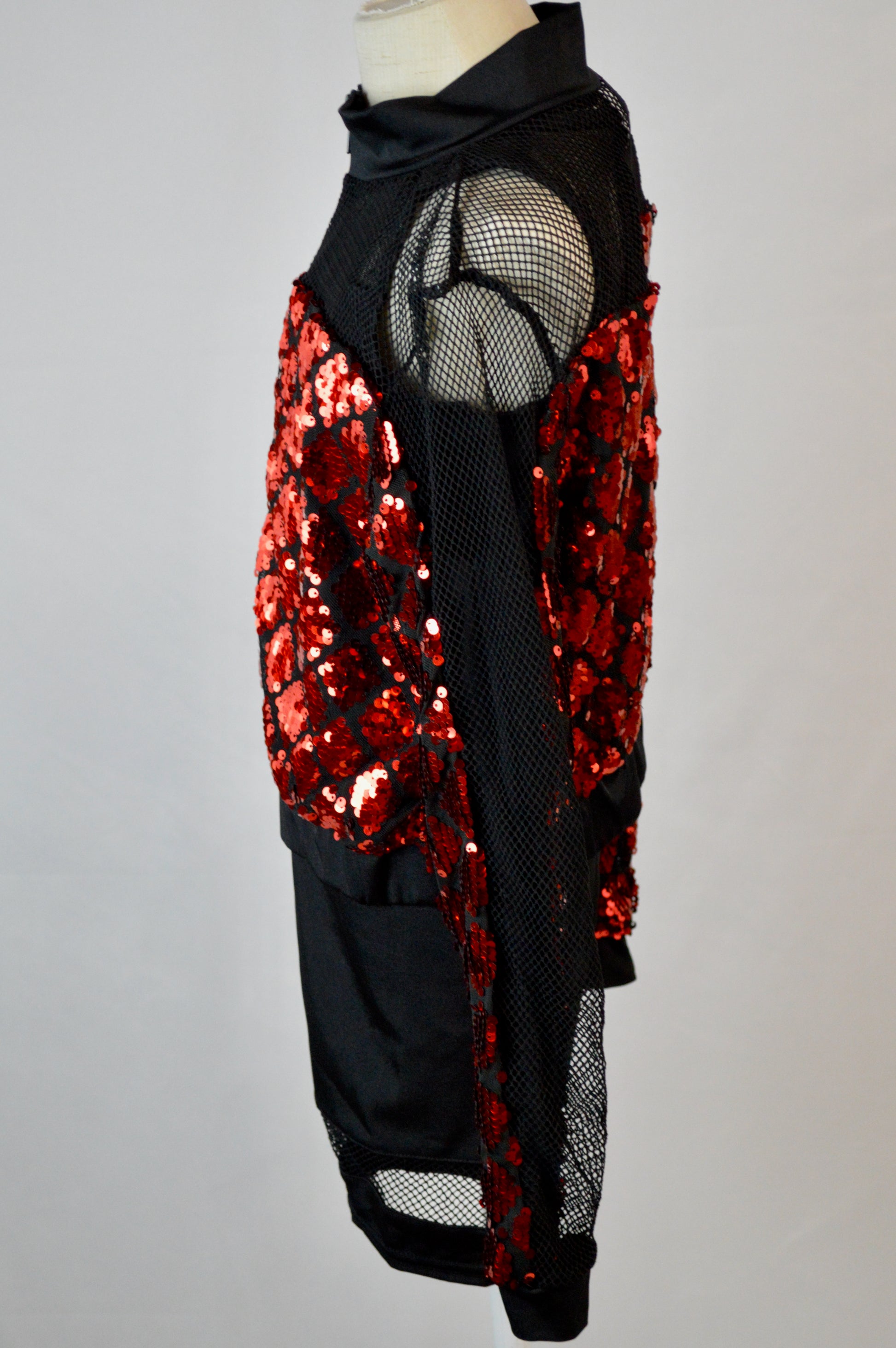 - sequin diamond pattern mesh on bottom sleeves