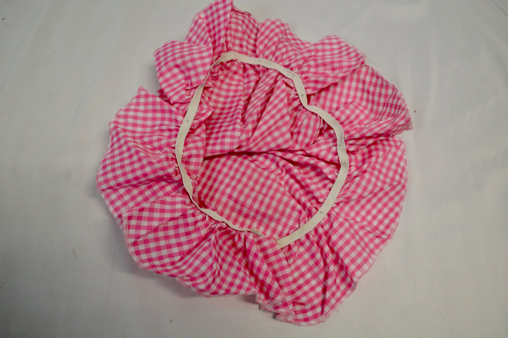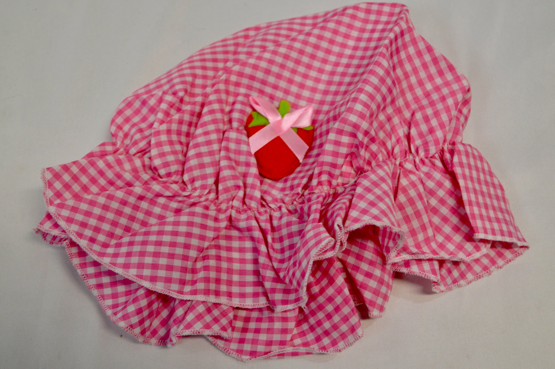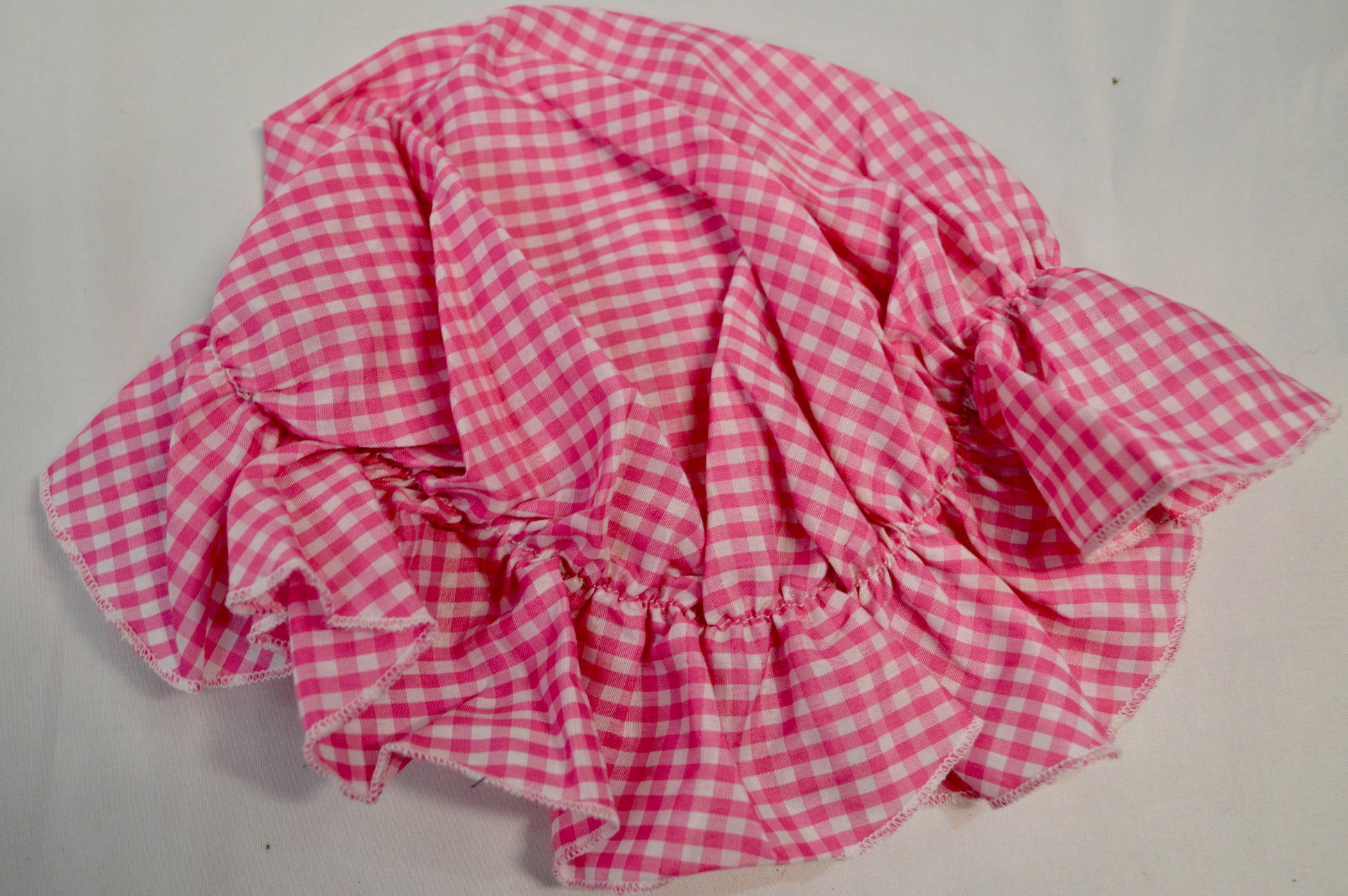 matching pink and white gingham bonnet
